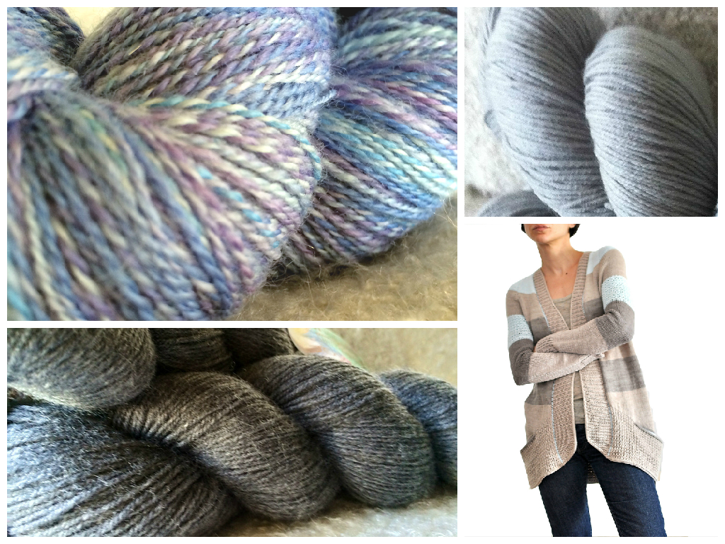 Yep, the BlueSand Cardigan from La Maison Rililie! I paired my blue and purple handspun with 2 solid shades of gray in Cascade Heritage yarn. The pattern usually calls for DK weight but the yarn I chose is actually fingering weight, so I’ll use a modified gauge and simply follow instructions for one size up what I actually want. I’m so thrilled about this project!